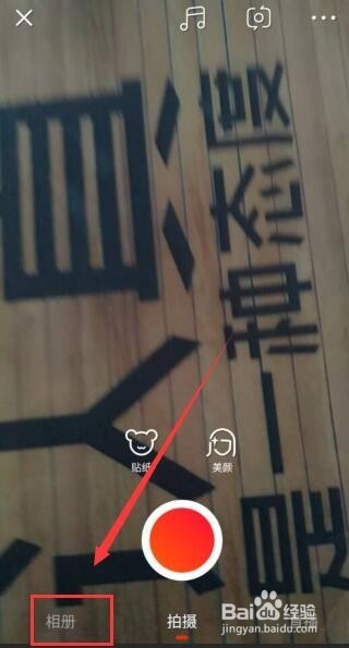 此时画面会从摄像头获取,点击左下方“相册”,即可打开当地文件夹,选择手机上已有的视频文件,从中选择合适的,进行编纂后上传。