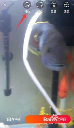 此时打开所选视频,进入编纂界面,在界面上方可以看到四个编纂东西,可以点击特效,为视频中某段持续帧,添加特效。将图2进度图标,拖动到特效肇端帧后,长按响应特效,进度条会往后走,当抬起手后,所选时段视频即被添加了特效。