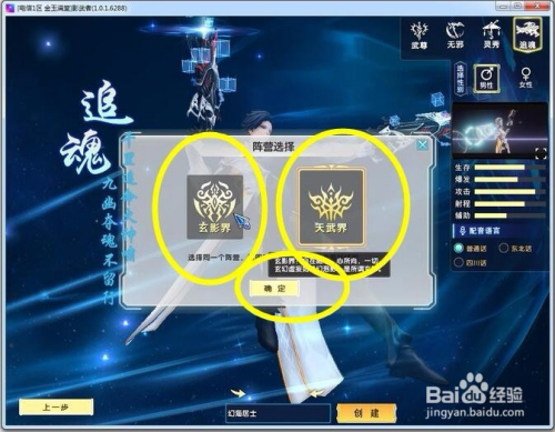 选择所属阵营,小编是玄影界阵营。还有天武界阵营可选择。
