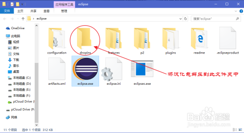 打开汉化包,解压上述分享文件中到之前eclipse解压文件目次下的dropins里