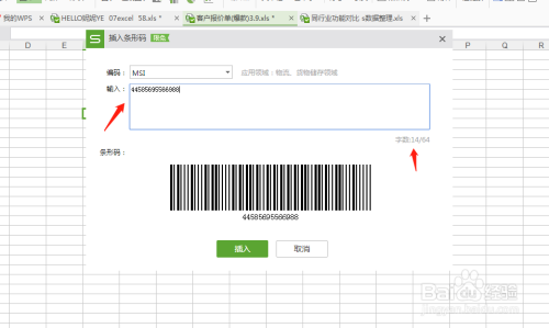 输入之后,点击“插入”,条形码信息就会在表格上,