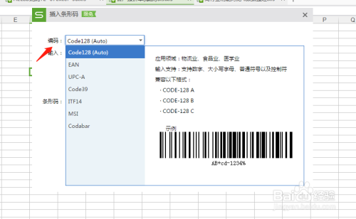 选择“条形码”之后,回弹出一个条形码信息设置的对话框