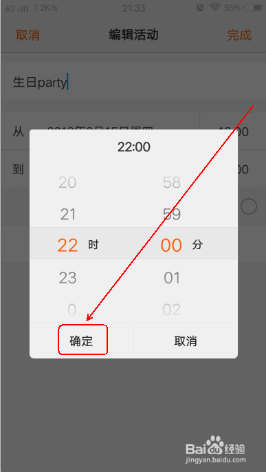 然后,设置“竣事时候”和“竣事时刻”。