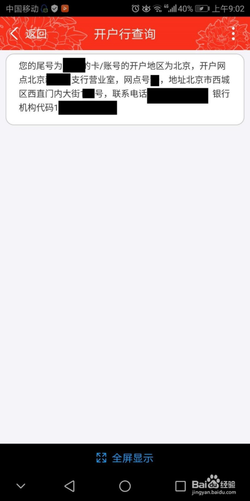 系统会主动闪现一段文字,里面具体介绍了开户行以及其联系体例、地址等信息。