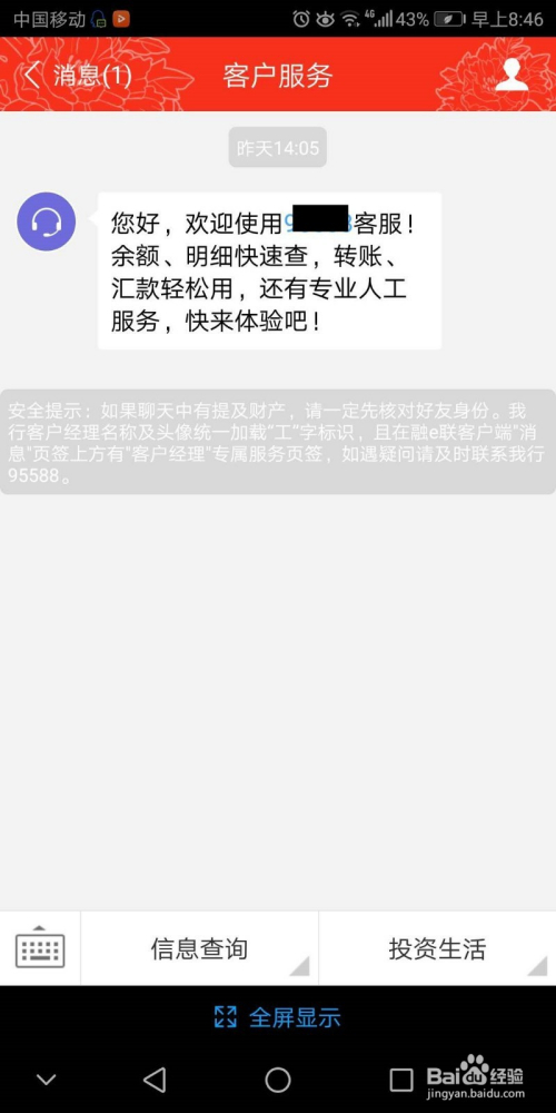 工银信使是主动通知每笔存条目变更的进口。点击客户办事对话框进入。