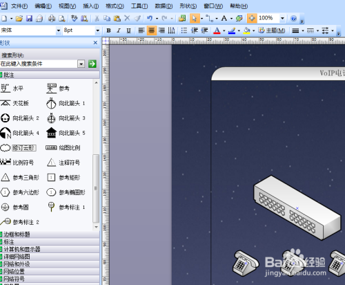 运用VISIO软件的收集模子,进行建造Voip系统的示意图。