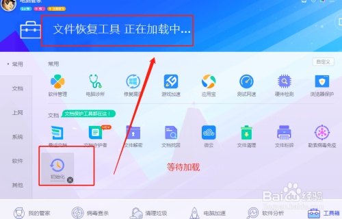 进到”东西箱“后,点击文档或者常用中的“文件恢复东西”进行添加
