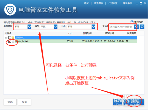 这里小编就选择恢复table_list.txt文本文件,点击起头恢复