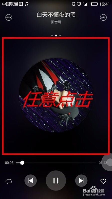 此时,在呈现的歌曲播放界面中肆意点击空白处;