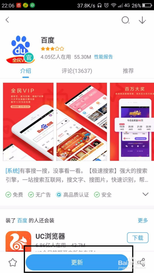手机百度每段时候城市更新一些功能或活动,只有实时更新到最新的版本才能有一些新的功能,下面小编教大师怎么更新手机百度