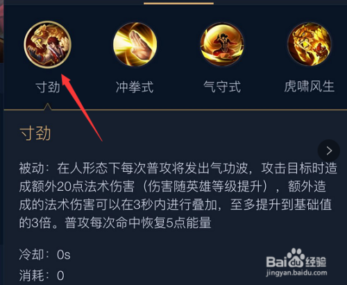 裴擒虎是一个不消蓝而利用能量的英雄,它的能量是普攻和技术进犯中方针恢复的。 它的被动技术“寸劲”,在人外形态下普攻是长途的“气功波”,击中方针会造当作额外20点法伤在3秒内可叠加3次,危险而且是随英雄的品级晋升而晋升。