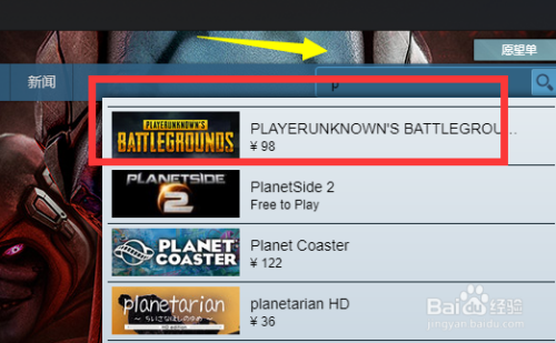 点击商铺,搜刮的时辰可以输入绝地求生,pubg万万不要输入吃鸡搜刮,因为吃鸡是个俗名,是找不到的。