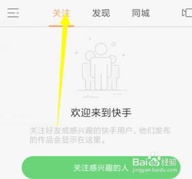 我们打开快手点击上方的存眷菜单。