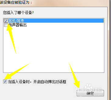 若是弹出这个窗口那么我选择耳机点击确定就可以正常利用耳麦了。