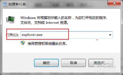 第四步爱建立新使命界面中输入“explorer.exe”,点击确定,需要注重的是,若是已经有explorer.exe历程了,需要先把这个历程竣事失落,如下图所示: