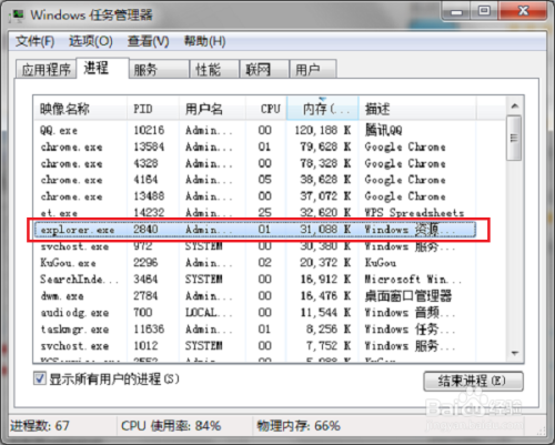 第五步可以看到已经从头运行了explorer.exe历程,这是一个办理桌面图标的历程,重置explorer.exe历程代表重置桌面图标,任何桌面图标不见了,都可以利用这种方式重置,如下图所示: