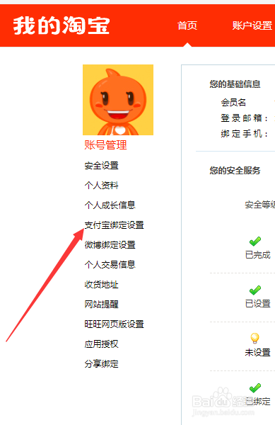 点击付出宝绑定设置,进入到付出宝绑定设置页面,如图