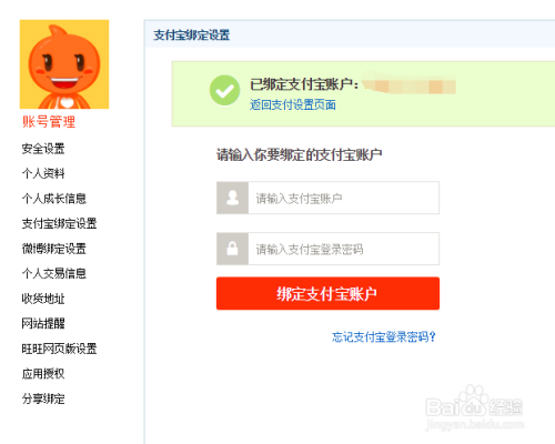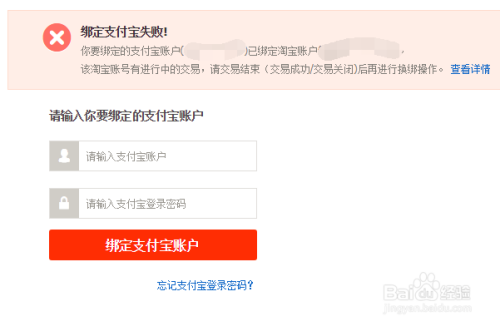 输入要绑定的付出宝账号,这里要注重不要输入已经绑定淘宝的付出宝和不存在的付出宝账号,如图