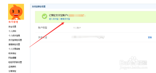 点击改换付出宝,进入到改换付出宝绑定页面,如图