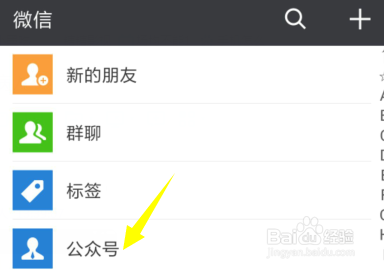 点击公家号之后这里会呈现我们已经存眷的公家号列表。