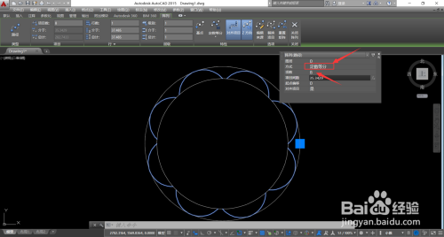 选中圆弧,以小圆为路径阵列当作八等分