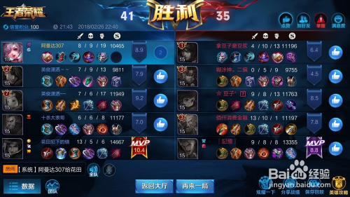 一路看看王者荣耀战绩结算的评分是如何提高的。