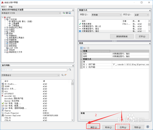 最后点击应用,在点击封闭就可以了。如许你就拥有了一套属于本身的AutoCAD号令快捷键了。