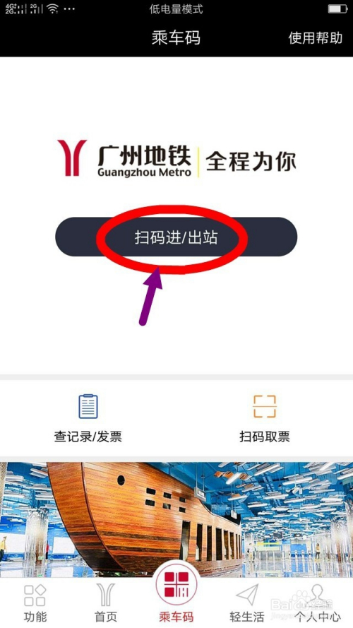 在“搭车码”本家儿页面,点击“扫码进/出站”;