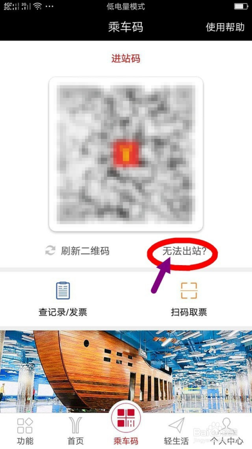 有时辰可能因为系统数据更新延时导致无法出站,您可以在“进站码”页面选择点击“无法出站”选项;