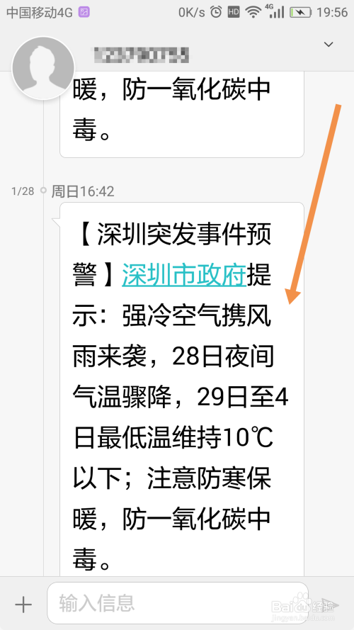然后打开手机里的信息,查看短信,可以发现字体变得了很多,如图(对比尺度字体和超年夜字体的区别),手机上的字体就当作功放年夜啦!
