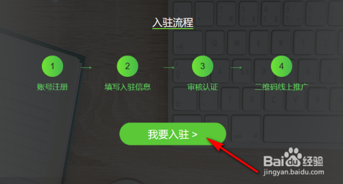 进入微选的官网今后,在首页可以看到【争先入驻】几个字,点击这几个字就可以进入到登岸/注册页面。除了在该位置可以进入到登岸/注册页面外,还可以拉动微选本家儿页至最下方,在最下方我们可以看到有一个入驻流程图,点击流程图下方的【我要入驻】,也可以进入到登岸/注册页面。
