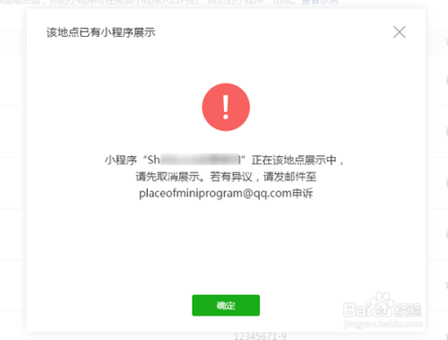 添加四周小法式时提醒“请先打消展示”一个经营天资只能添加一个地址,一个地址只能展示一个小法式。