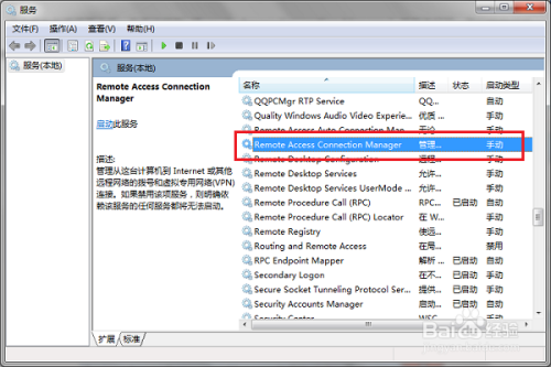 第二步进去办事界面之后,找到“Remote Access Connection Manager”办事,鼠标右键属性,进去,如下图所示: