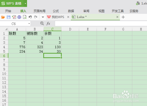 设置完求余函数回车,主动显示出设置的单位格的余数,如图