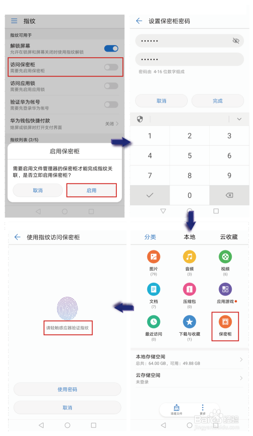 4. 点击拜候保密柜,并按照屏幕提醒输入保密柜密码,开启利用指纹拜候保密柜功能。