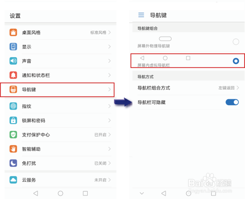 2. 选择屏幕内虚拟导航栏,即可开启。