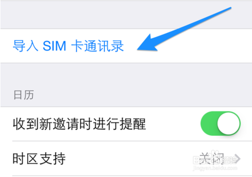 3、在“邮件、通信录、日历”列表中找到“导入 SIM 卡通信录”选项,点击导入即可,如下图所示: