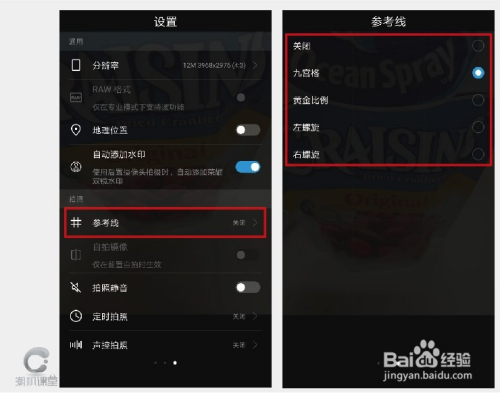 注:并非所有的拍摄模式均撑持设置构图辅助线,请以现实功能为准。