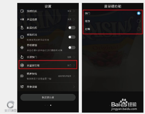 打开【相机】。标的目的左滑动屏幕,点击【音量键功能】。