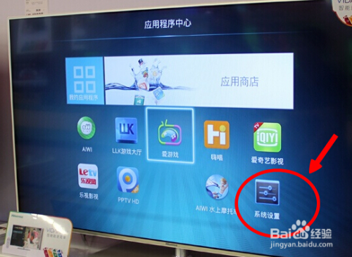 然后打开电视机,用遥控器操作电视机,进入“系统设置”;