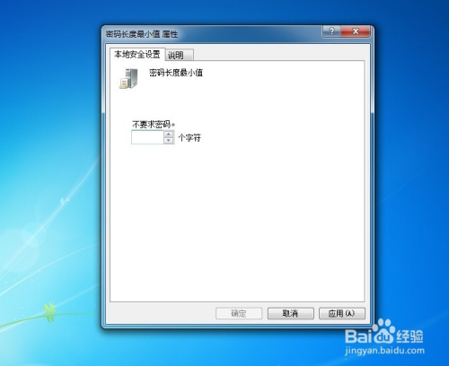 然后设置你的密码长度的最小值,这里以最小值“8个字符”为例,设置好后,点击“确定”(密码长度可以本身设置,这里以8个字符密码长度为例)