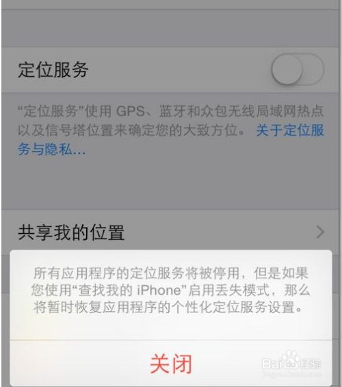 弹出封闭定位办事的提醒框点击封闭按钮,定位办事就完全封闭了。如下图所示: