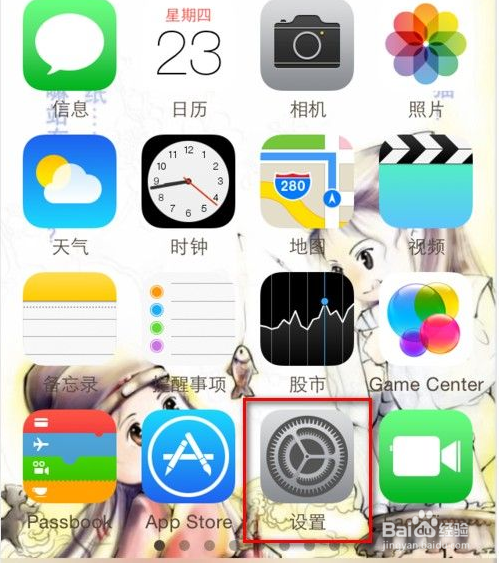 在苹果手机桌面上点击设置图标进入,如下图所示: