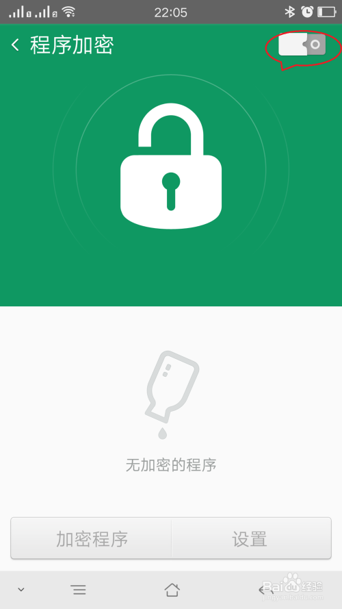 打开加密法式按钮,选择需要加密的法式,打开设置过加密的应用时就需要输入密码了,如图
