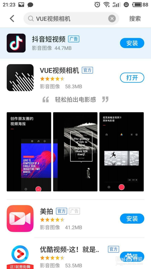 在手机上搜刮VUE视频相机,点击下载到手机上。