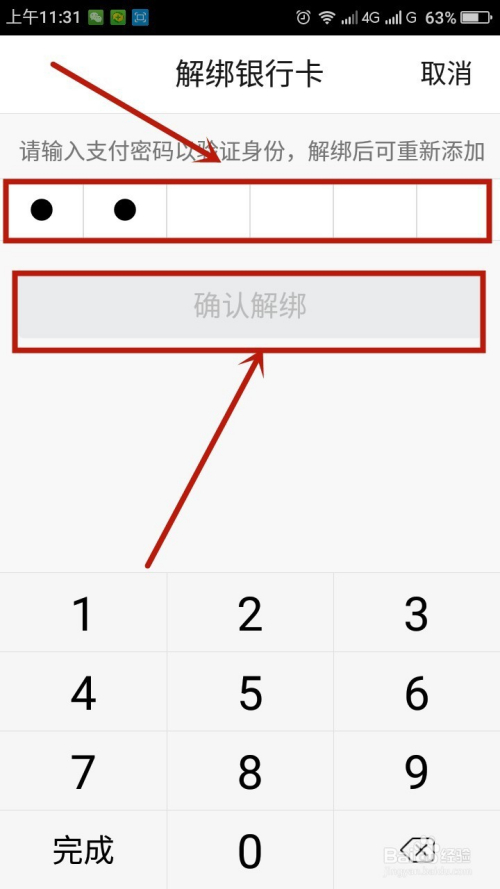 点击“仍然解绑”,输入付出密码后,点击“确认解绑”,解绑当作功。