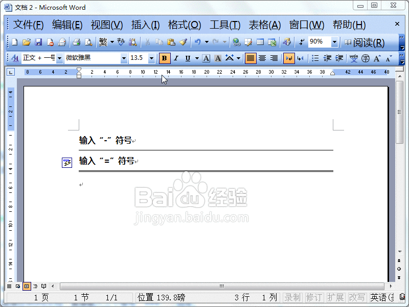 我们在直接在word文档,直接输入三个等号“===”,回车。