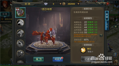 点击之后,我们就会直接进入到这个坐骑界面,左侧就是我们拥有的坐骑。
