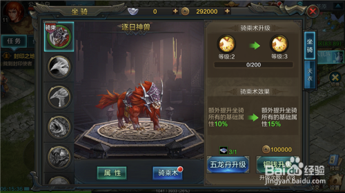 点击下方的骑乘术,就会进入到这个界面,我们可以看到进级体例有2种。