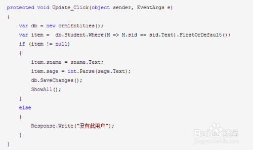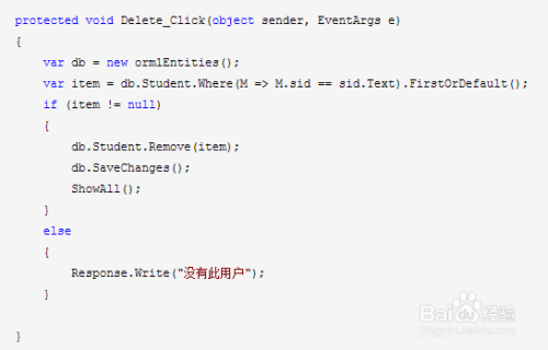 那么,此刻我们就可以在 cs 文件写操纵 ADO.NET 的实体类型模子操作数据库的代码了。